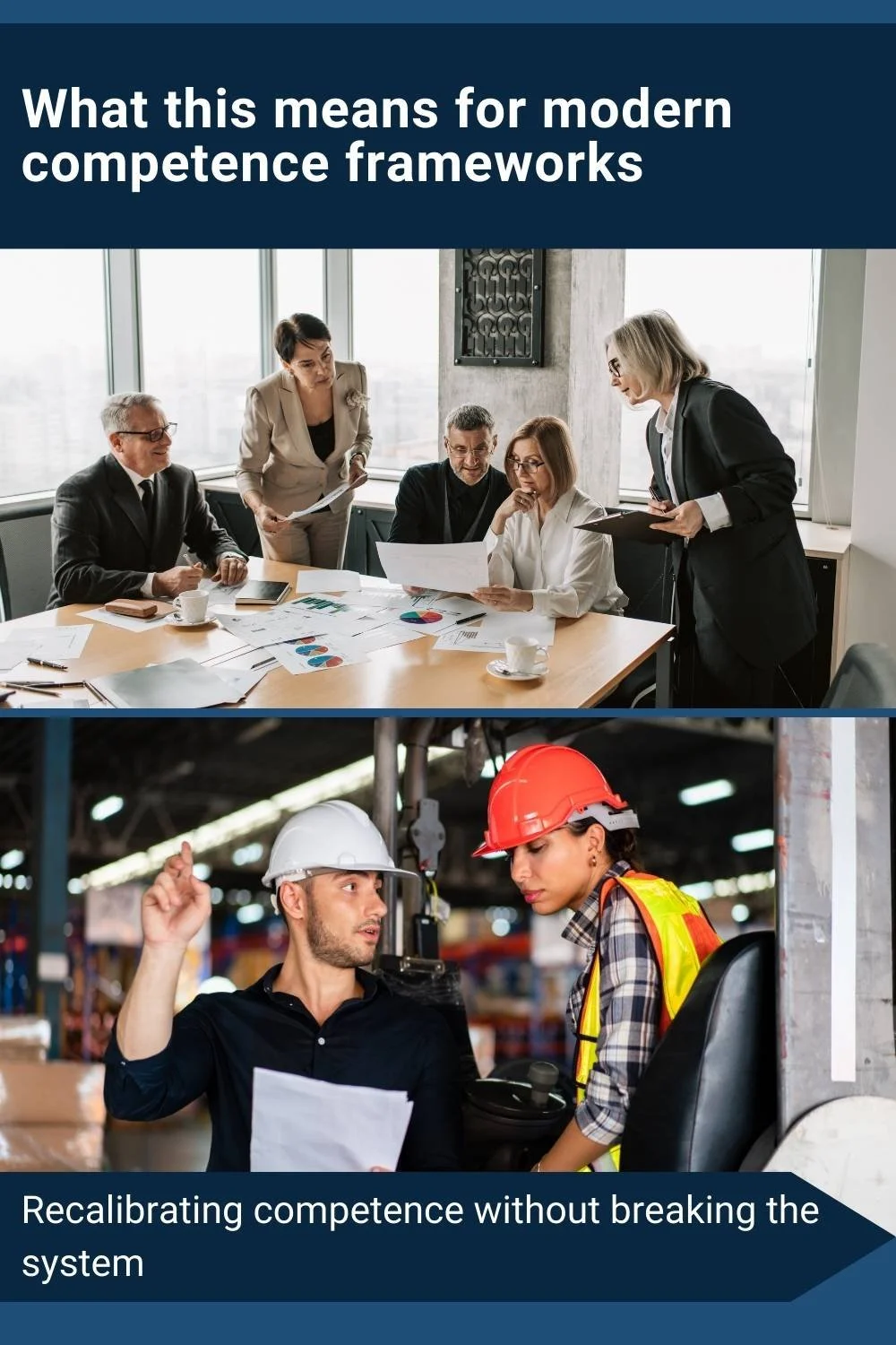Seen this way, competence is no longer best understood as a list of tasks. It functions as a set of trust boundaries: defining what someone may do independently, when they must escalate, and how they are expected to behave within systems designed to manage risk. Organisations already operate this way in practice. What remains missing is an explicit acknowledgement of this shift in how competence is defined, assessed, and governed.